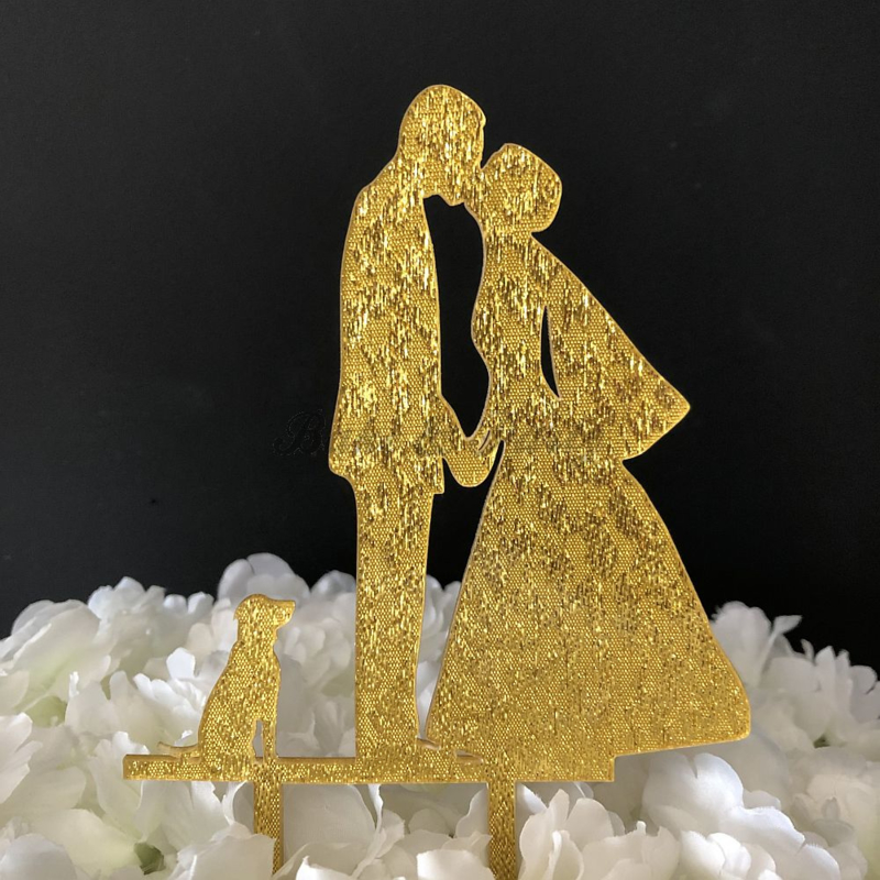 Taart Topper Acryl "Bruid, Bruidegom, Hond" (3)